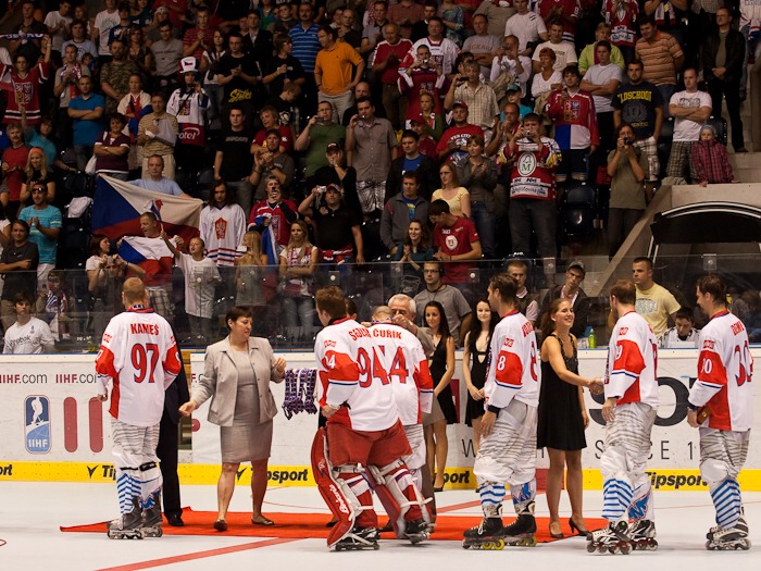 Z důvodu přímého přenosu ČT odstartuje finálové utkání Česko - USA o 5 minut dříve v 17:55.