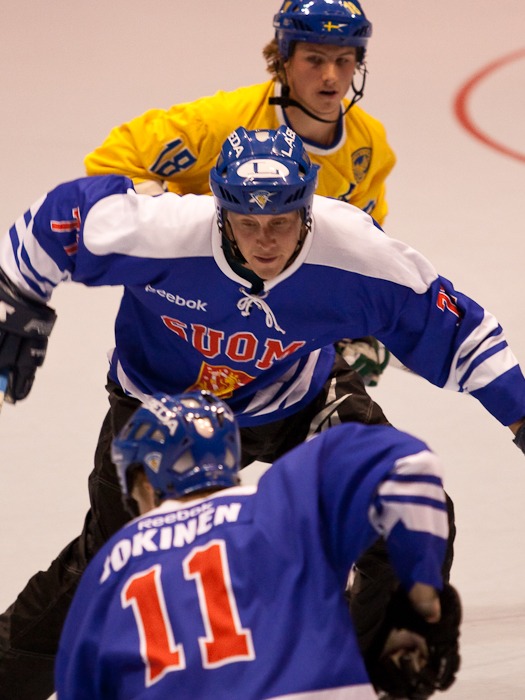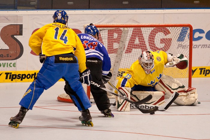 V hokeji patří mezi absolutní špičku, zda i ve sportu v kolečkovém provedení, to mohly celky Švédska a Finska potvrdit ve druhém utkání elitní skupiny mistrovství světa. Do severského derby vstoupil lépe výběr Švédů, poté co se ujal vedení záhy po úvodním vhazování. Luukkonen pronikl až před finského brankáře Karha, kterého nadvakrát překonal. Zaskočený tým Finska dlouho nemohl najít tvář, obzvláště, když se brzy po inkasované brance musel bránit v oslabení. Finové se poprvé vážněji prosadili až v páté minutě, kdy první střelu na branku Sebastiana Idoffa vyslal Laaksonen.