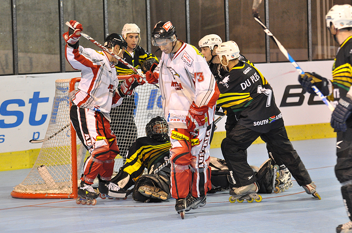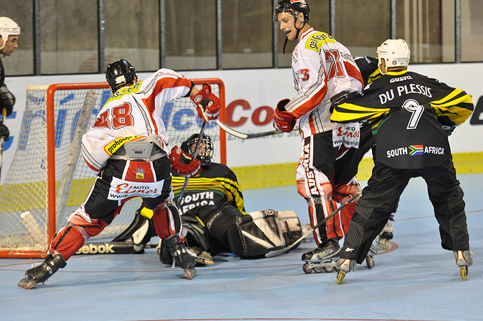 Utkání se odehrávalo v malé hale pardubické ČEZ Arény a málokdo tušil, že z tohoto klání vznikne taková přestřelka. Rakouský výběr totiž nadělil svému soupeři z Jihoafrické republiky desetibrankový příděl. O vítězi bylo prakticky rozhodnuto již v polovině střetnutí.