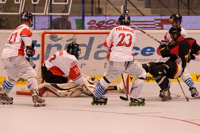 V neděli odpoledne se český tým poprvé představil na mistrovství světa. Čeští inline hokejisté se na vstup do turnaje vyloženě těšili a v utkání s Německem to na hrací ploše bylo vidět. Česká hra nepostrádala chytrost a krásu a nakonec slavila úspěch, kterým byla vysoká výhra 9:1. Český brankář Roman Handl měl navíc velmi blízko k nule. Nakonec o ni smolně přišel až dvě minuty před koncem utkání.