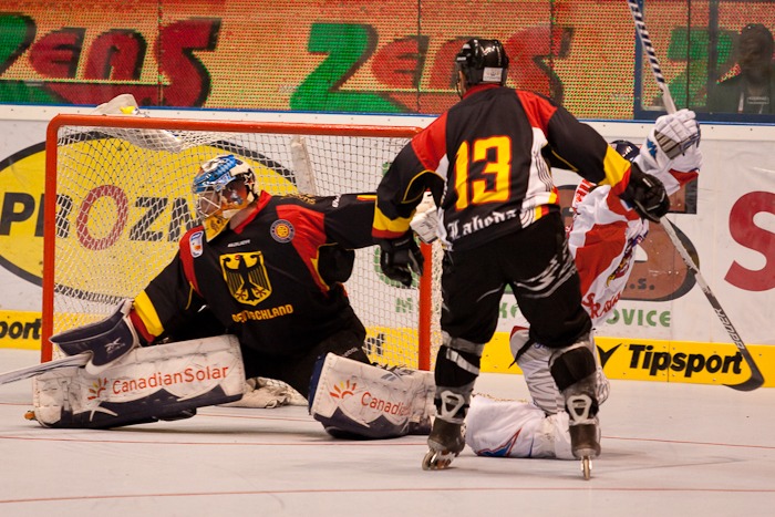 Český výběr byl v úvodním zápase opravdu při chuti a publikum v pardubických ochozech nabízel jen to nejlepší ze svého umění. K vidění byla například další parádní souhra Koudelky s Tenkrátem nebo gólové šance Patrika Šebka a Tomáše Mojžíše. Němci měli blízko ke kontaktní brance ve 22. minutě, ale kotouč z hole Patricka Seiferta zamířil jen do sítě. Ještě ve stejné minutě se český výběr vydal do protiútoku a Martin Vozdecký společně s Lukáše Brožem předvedli zatím nejhezčí akci turnaje. První jmenovaný už mohl kotouč zasunout do prázdné brány, ale vrátil ho zpět přes německého obránce do předbrankového prostoru a nechal zakončit svého spoluhráče - 0:3. „Dneska jsme z toho byli až překvapeni, že to šlo tak jednoduše,“ řekl jeden ze střelců Martin Vozdecký.