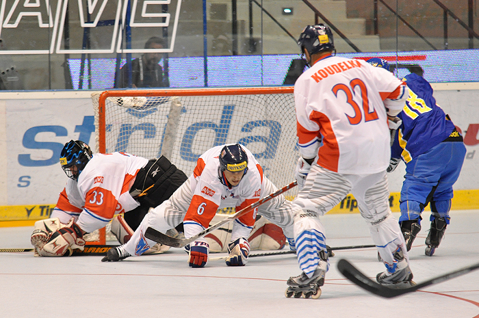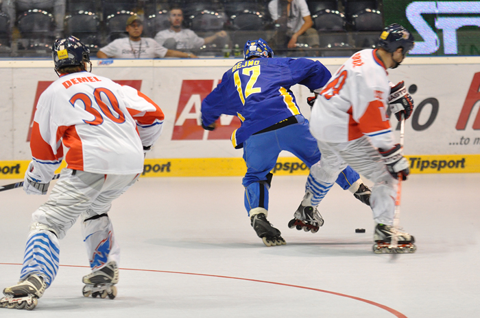 Suverénním způsobem procházejí čeští in-line hokejisté domácím šampionátem. Po drtivých výhrách nad Německem a Finskem přehráli i silný výběr Švédska. Hokejisté Tre konor zlobili český tým jen úvodních pět minut, zbytek zápasu se odehrával v české režii. A po vítězství 6:3 okořeněném hromadnou bitkou svěřenci kouče Hemského postupují do play-off z nejvýhodnější možné pozice.
