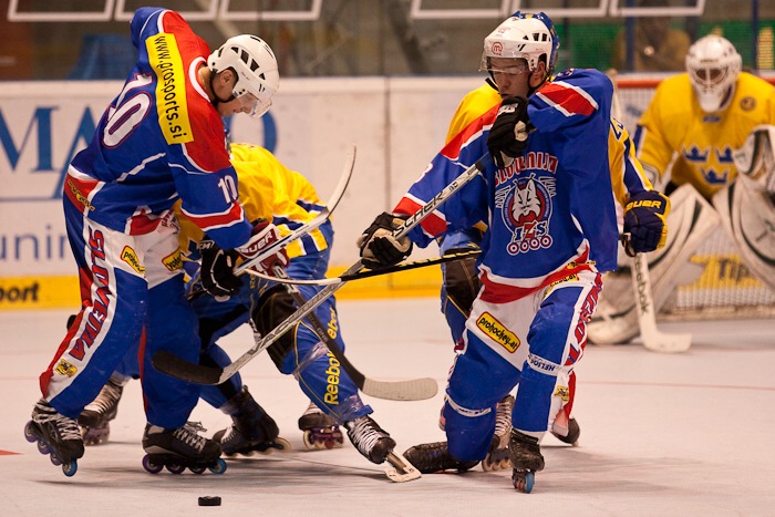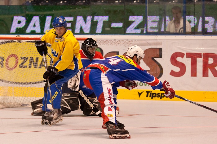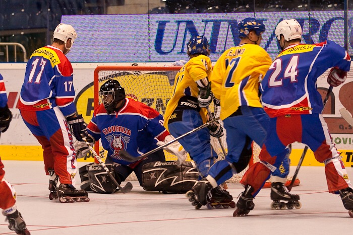 První čtvrtfinále na MS v inline hokeji vypadalo dost zajímavě. Švédové byli favority, ale Slovince se nedalo podcenit. Oba týmy začínaly opatrně. V první velké šanci se objevil Luukkonen, ale brankář Krošelj byl pozorný a střelu si řádně pohlídal. Avšak Slovinci byli ti, co vstřelili první branku. Anze Kuralt nachytal švédského brankáře a vstřelil první branku tohoto utkání. Následně se snažili Švédové vyrovnat, ale všechny střely končili na Krošeljovi. Krošelj se neuvěřitelně vyznamenal, když betonem chytil střelu Berglunda, ten měl před sebou téměř prázdnou branku. Slovinci zvýšili svůj náskok na 2:0, poté co nádhernou střelou, která se ještě otřela o horní tyč skóroval Matic Kralj. Tímto uzavřel důležité dění v první čtvrtině