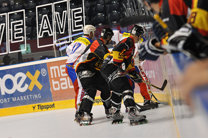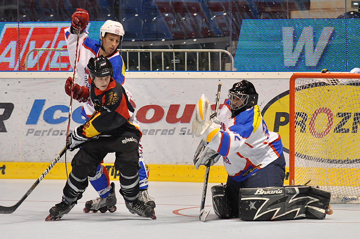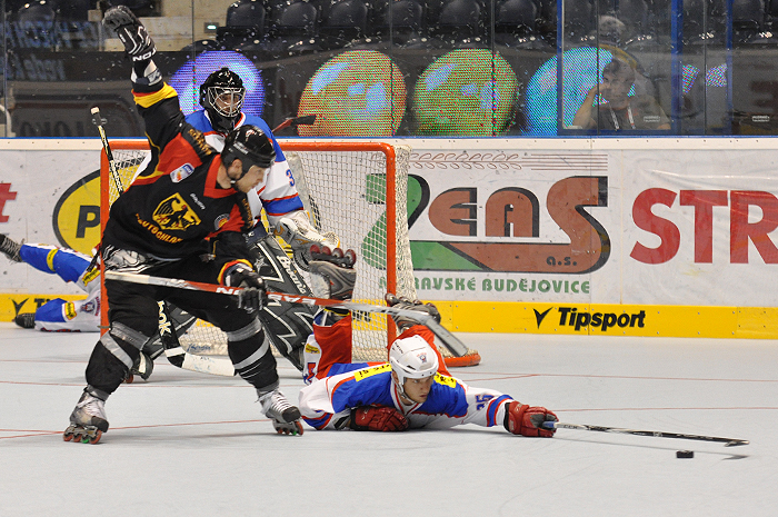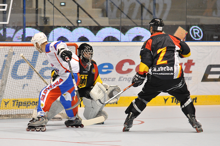 Přesně o minutu později zamířil Matič Kralj pod horní tyč německé branky a rychlou střelou švihem opět zajistil nerozhodné skóre. To na světelné tabuli vydrželo na inline hokejové poměry velmi dlouho. Oba týmy čekaly spíše na zaváhání soupeře.