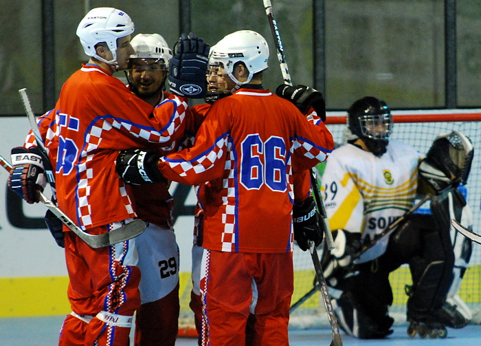 Chorvaté potřebovali do zápasu vstoupit o poznání lépe než do čtvrtfinále. V zápase proti Austrálii je totiž nevydařený začátek srazil na kolena tak, že už se nevzpamatovali. A tentokrát podobný scénář odmítli, to když ve čtvrté minutě zblízka prostřelil Davida Bergera Igor Jačmenjak. Aktivita Chorvatů neustávala a i když jihoafrického brankáře dvakrát zachránila tyč, napotřetí už jeho protivníci mířili přesně a Miro Smerdelj zvýšil na 2:0. „Po včerejšku pro nás bylo hodně těžké znovu nazout brusle a odehrát zápas. Bylo to pro nás velké zklamání,“ netajil se se svými pocity po nadějně rozehraném čtvrtfinále jihoafrický kapitán André Marais.