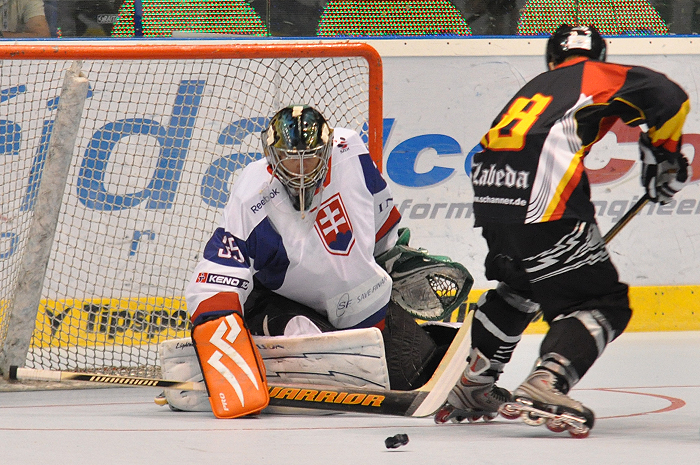 Do začátku utkání vstupoval německý tým bez svého nejlepšího hráče Thomase Greilingera, jenž po debaklu se Spojenými státy odjel ze šampionátu. Na Němce to však nenechalo žádný dopad, jelikož již ve čtvrté minutě Florian Engel doklepl odražený puk přímo za záda Ondrejky. V čase 7:11 podruhé rozjásal německou střídačku Stefan Ortolf, jenž se prezentoval výstavní ranou z mezikruží, která vymetla pavučinku Ondrejkovy branky. Do konce první sirény zvýšil vedení německého celku ještě Christian Wichert – 3:0.